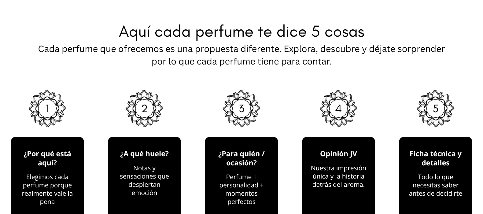 Por eso, cada fragancia en nuestra tienda tiene una ficha diseñada para guiarte paso a paso, con información clara, honesta y emocional.